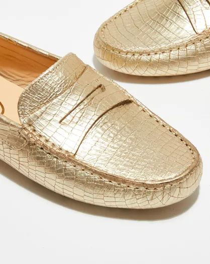 Mocassins en Cuir Croco dorés
