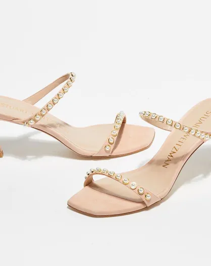 Sandales en Velours de Cuir Aleena rose poudré - Talon 7,5 cm