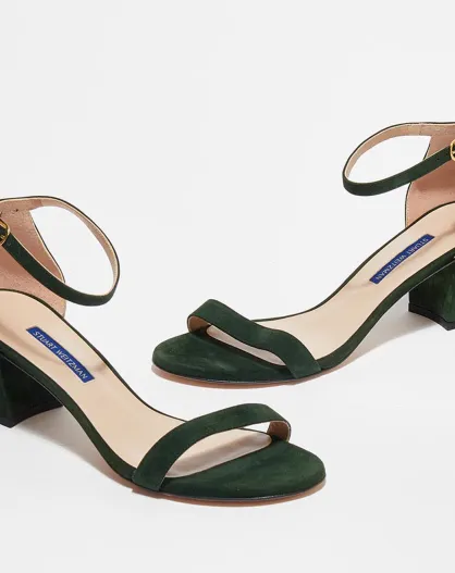 Sandales en Velours de Cuir Simple vert sapin - Talon 6,7 cm