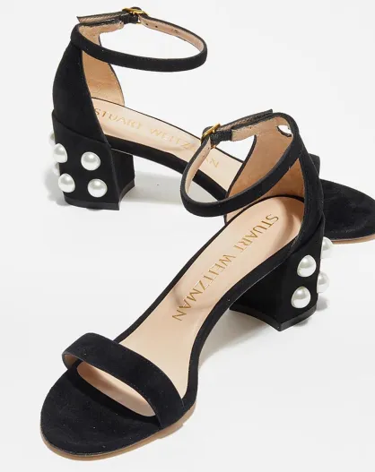 Sandales en Velours de Cuir Simple Pearls noires - Talon 6,5 cm