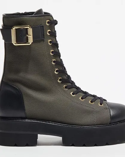 Boots en Cuir & Textile Ryder kaki/noir - Talon 5 cm