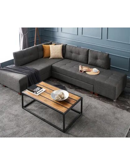 Canapé d'angle gauche convertible Manama anthracite - 280x85x206 cm