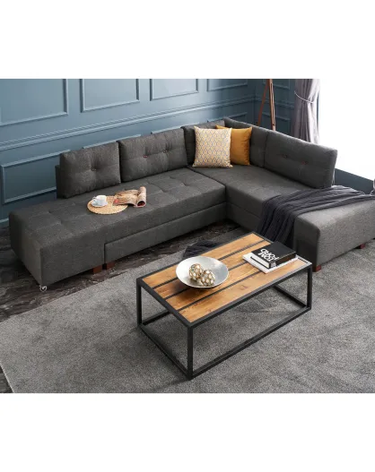 Canapé d'angle droit convertible Manama anthracite - 280x85x206 cm