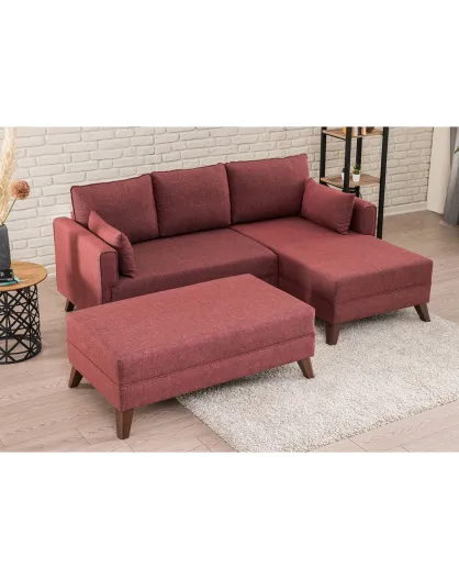 Canapé d'angle droit convertible & pouf Bella bordeaux - 205x85x140 cm