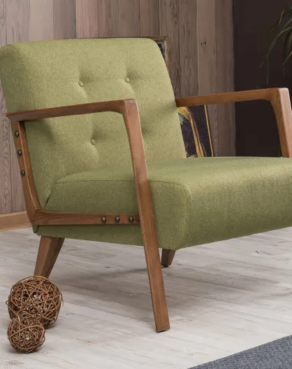 Fauteuil en Mindi tissu chiné Eris kaki - 65x65x75 cm