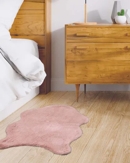 Tapis imitation fourrure poil fin rose poudré - 60x90 cm