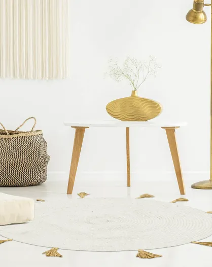 Tapis rond Coton pompon beige - D.90 cm
