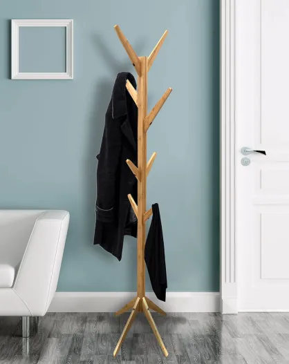 Porte-manteau arbre en bois beige - 44.5x44.5x177 cm