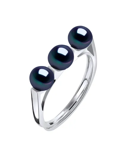 Bague ajustable Trilogy Argent rhodié & Perles d'Eau Douce boutons noires