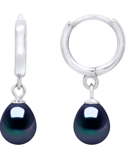 Boucles d'oreilles Créoles Argent Rhodié & Perles d'Eau Douce poires noires