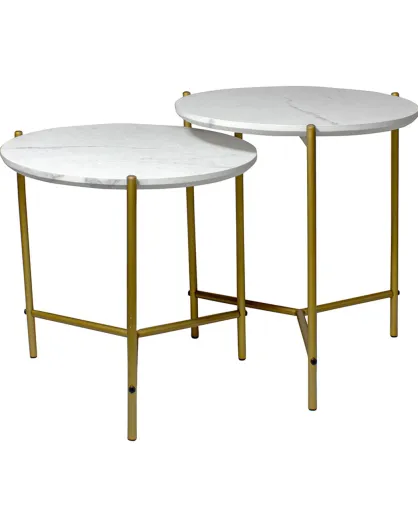 2 Tables basses effet marbre shiap blanches - 40x40 cm