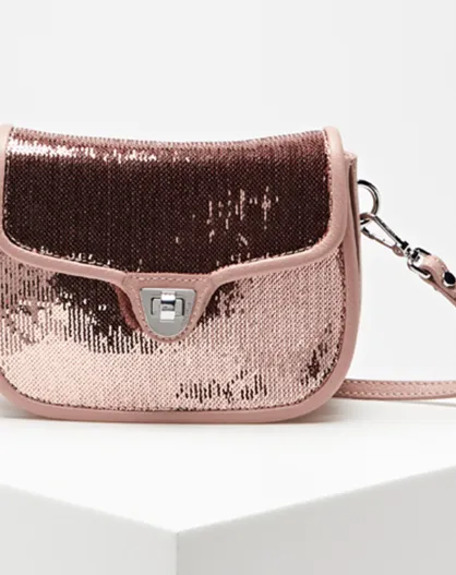 Petit sac bandoulière en Cuir sequins Mini Florence rose 19x14x7 cm