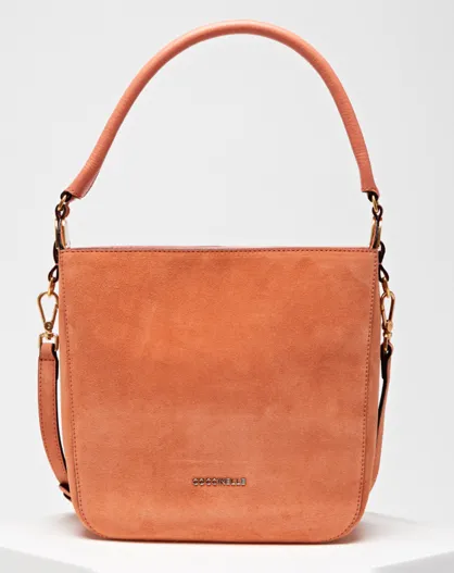 Sac à main en Velours de Cuir Florence pêche 21x22x9 cm