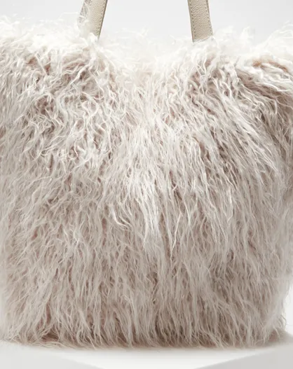 Sac cabas en Cuir & Fausse Fourrure Mistral Mongolia écru 32x38x16 cm