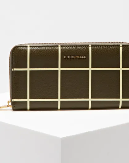 Compagnon en Cuir Metallic Tiles imprimé kaki foncé 19.5x10.5 cm