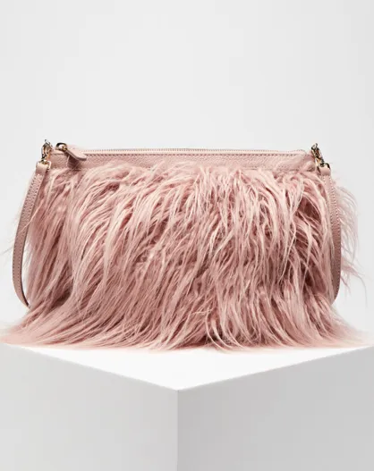Sac bandoulière en Cuir & Fausse Fourrure Mini Bag rose 27.5x19.5 cm