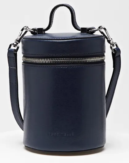 Petit sac cylindre en Cuir Mini Bag encre 12x17x12 cm