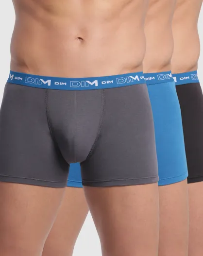 3 Boxers Coton Stretch gris plomb/bleu océanique/noir