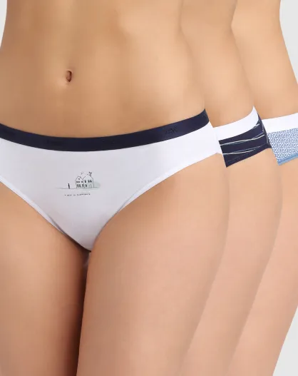3 Culottes Les Pockets Coton imprimé polaire blanc/bleu