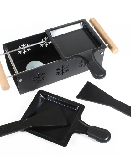 Raclette duo à la bougie bois/inox/noir - 32x11 cm