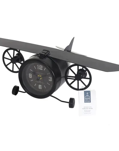 Horloge à poser avion vintage noir - 47x26x17 cm