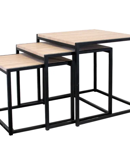 3 Tables carrées gigognes marron/noir - 45x45x45 cm
