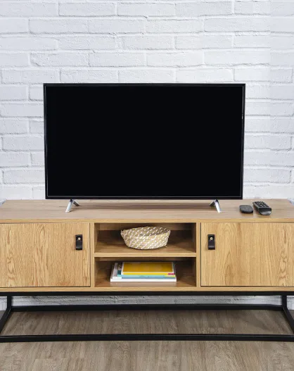 Meuble TV bois et métal Abbott naturel/noir - 117x39x48 cm