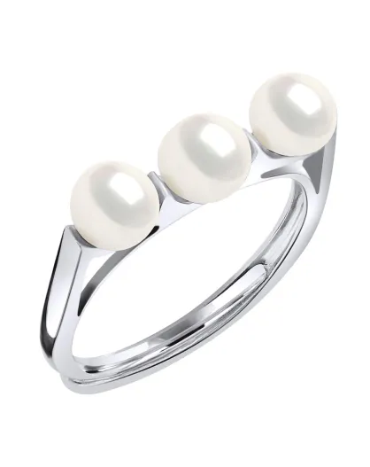 Bague ajustable Trilogie Argent Rhodié & 3 Perles d'Eau Douce boutons blanc naturel