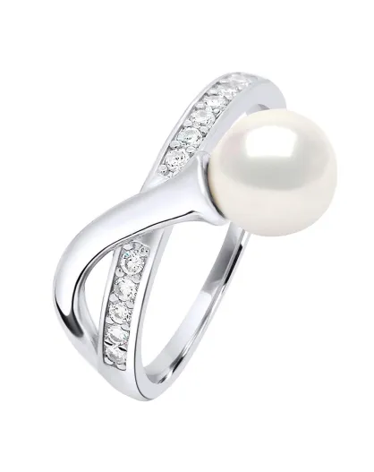 Bague ajustable Argent Rhodié, Zircone & Perle d'Eau Douce ronde blanc naturel