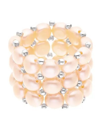 Bague ajustable 3 Rangs Acier & Perles d'Eau Douce rondes roses