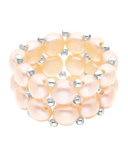 Bague ajustable 2 Rangs Acier & Perles d'Eau Douce rondes roses