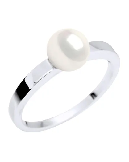 Bague Argent Rhodié & Perle d'Eau Douce ronde blanc naturel