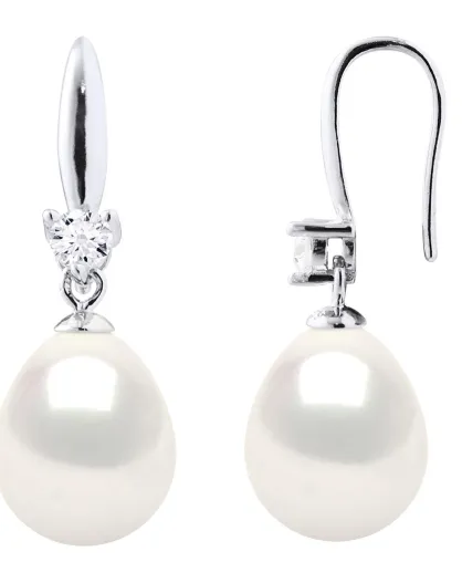 Boucles d'Oreilles Argent Rhodié, Zircone & Perles d'Eau Douce poires blanc naturel