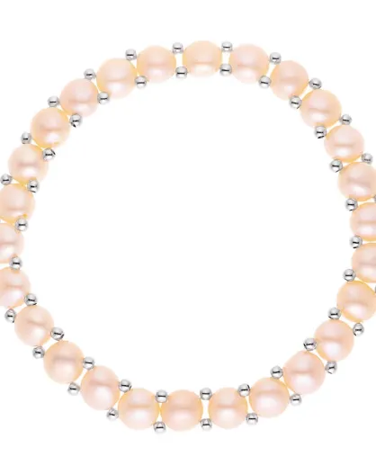 Bracelet Rang Acier & Perles d'Eau Douce rondes rose naturel