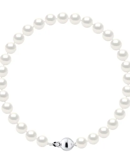 Bracelet Rang Argent Rhodié & Perles d'Eau Douce rondes blanc nacre naturel