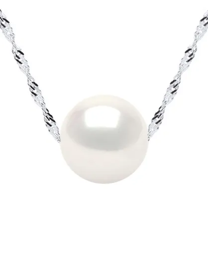 Collier Solitaire Argent Rhodié & Perle d'Eau Douce traversante ronde blanc naturel