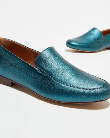 Mocassins en Cuir Love irisés émeraude