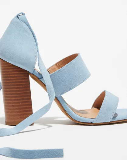 Sandales en Velours de Cuir Charlie bleu ciel - Talon 9,5 cm