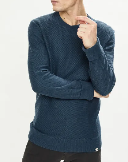 Pull en Lin mélangé Slim Fit bleu pétrole