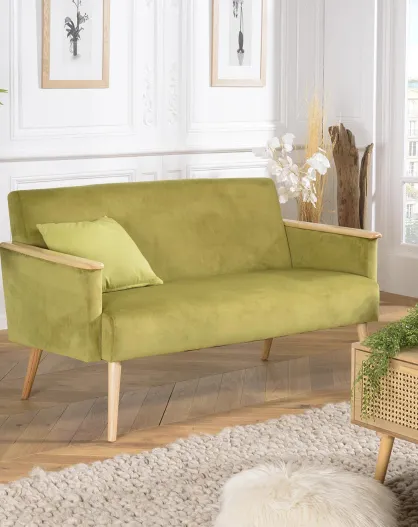 Canapé 2 places velours accoudoirs agathe vert clair - 140.5x75x79.5 cm