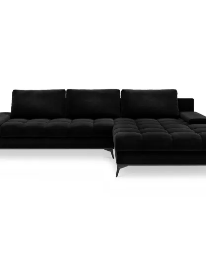 Canapé d'angle droit velours convertible avec coffre de rangement deneb 5 places noir - 315x212x87 cm