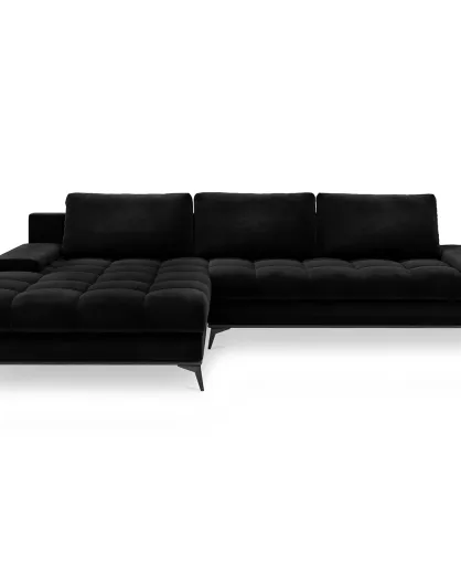 Canapé d'angle gauche velours convertible avec coffre de rangement Deneb 5 places noir - 315x212x87 cm