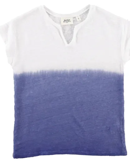 T-Shirt 100% Lin Toky délavé blanc/bleu