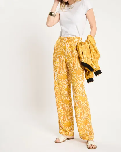 Pantalon fluide tie & dye imprimé jaune