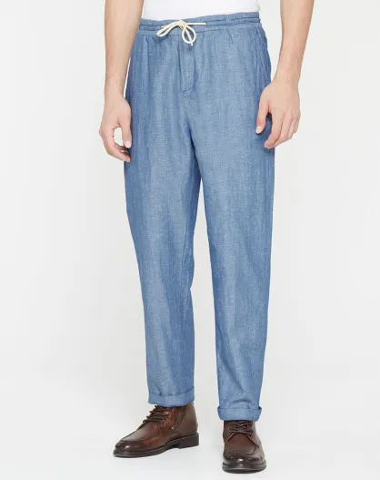 Pantalon en Coton bio & Lin Regular Fit élastique bleu
