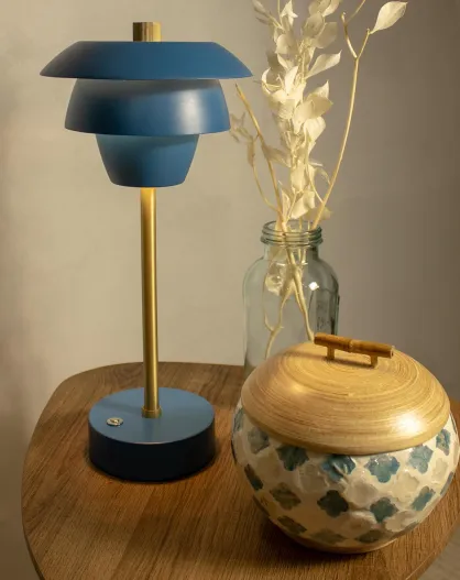 Lampe de table rechargeable moxy bleu/doré - 17x31 cm