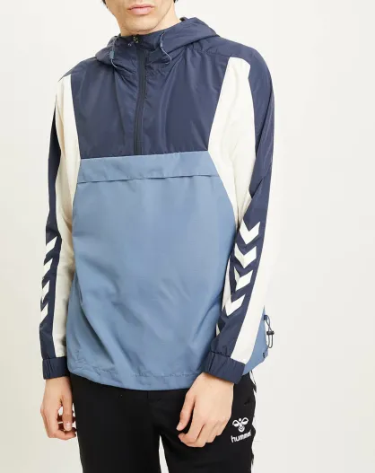 Blouson fin coupe-vent à enfiler demi zip bleu/blanc