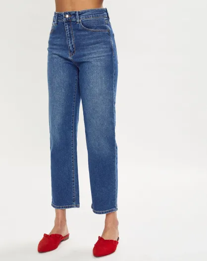 Jean Droit taille haute élastique bleu moyen
