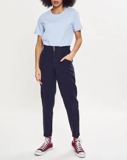 Pantalon fluide taille élastique bleu foncé