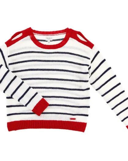 Pull Luna ouvert épaule rayé blanc/bleu/rouge